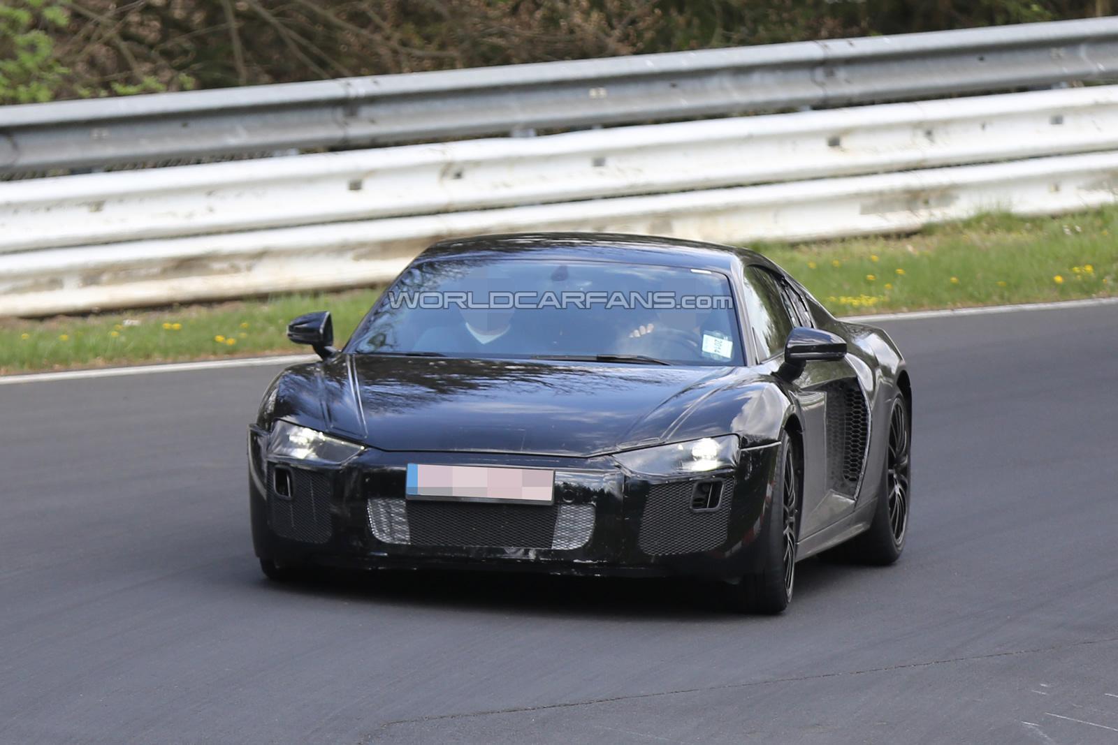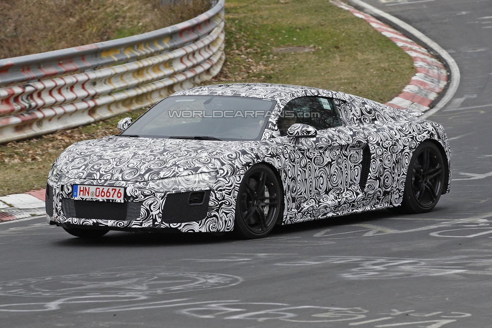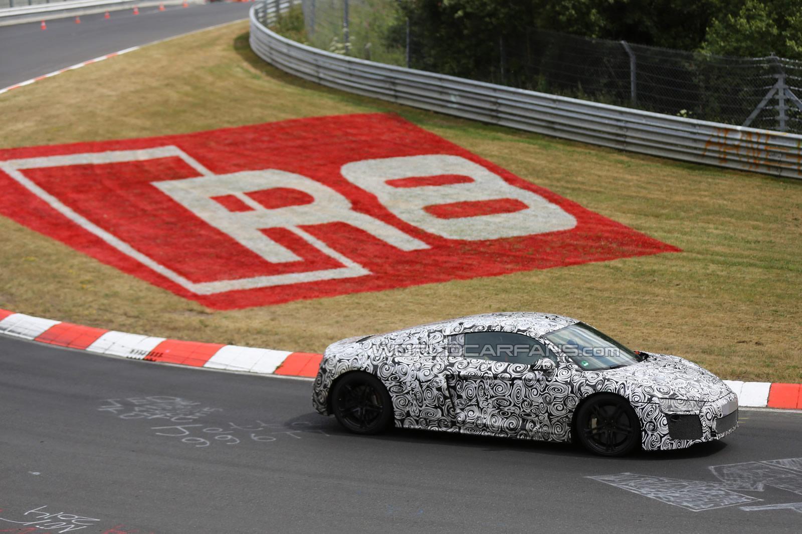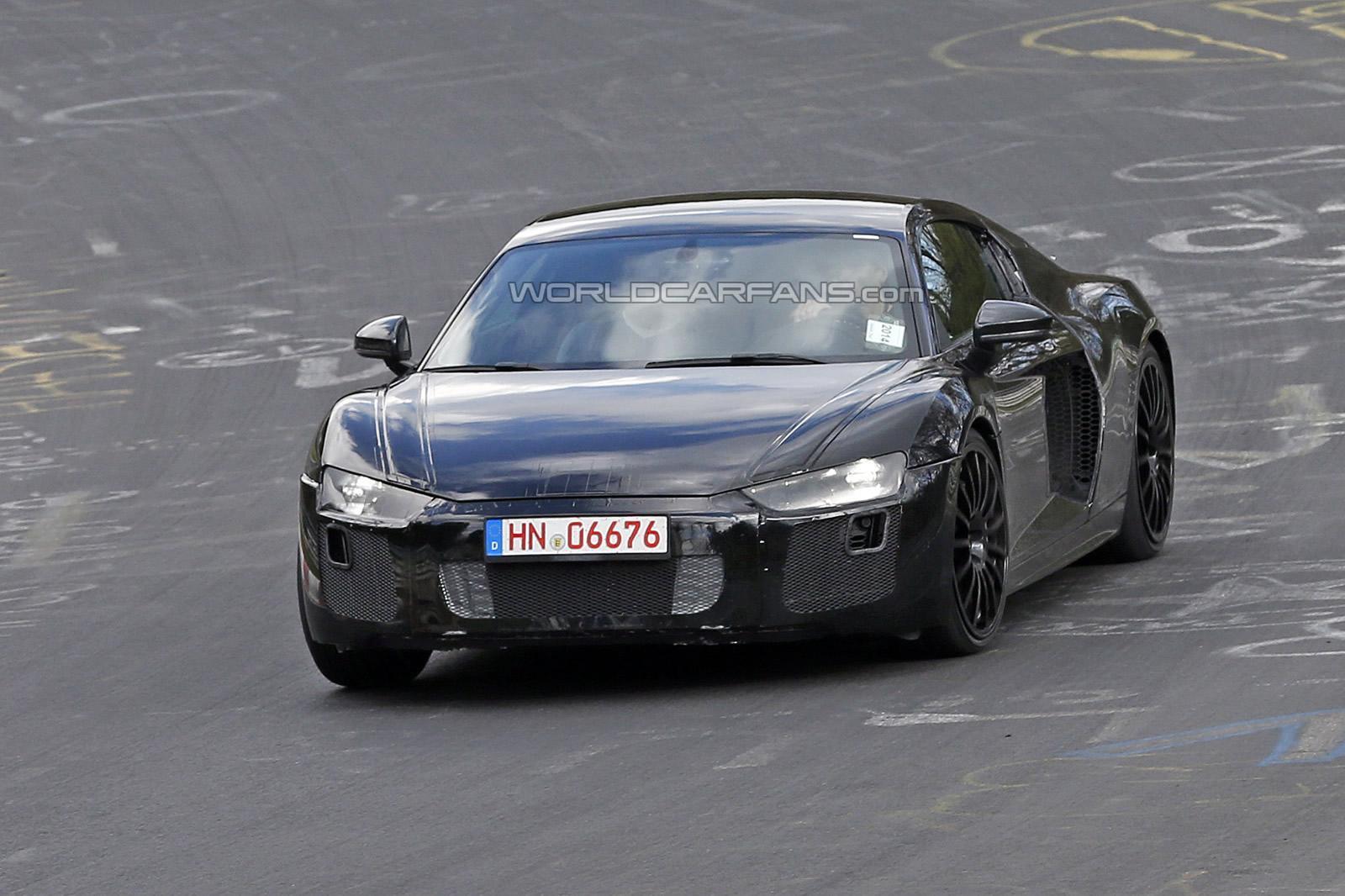 Audi’nin ikinci nesil R8 modeli Nürburgring pistinde test sırasında iken kamuflajlı olarak yakalandı. 59 kg hafifleyen yeni R8 modeli Marttaki 2015 Cenevre Otomobil Fuarı’nda tanıtılacak. Modelde 4.2 litre V8 ve 5.2 litre V10 motorlar görev yapacak. Fuarda R8 modelinin yanında birde e-tron isimli tamamen elektrik ile çalışan model de tanıtılacak. 7 İleri çift kavramalı otomatik şanzıman ile birlikte gelecek olan R8 modelinin yetkilileri, e-tron isimini verdikleri elektrikli model üzerinde çalıştıklarını ve tek şarj ile yaklaşık 500 kilometre menzil hedeflediklerini söyledi.