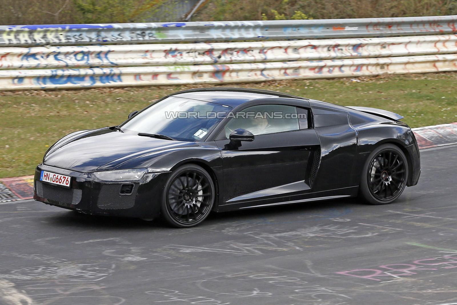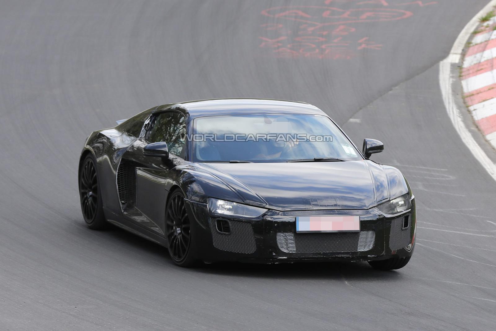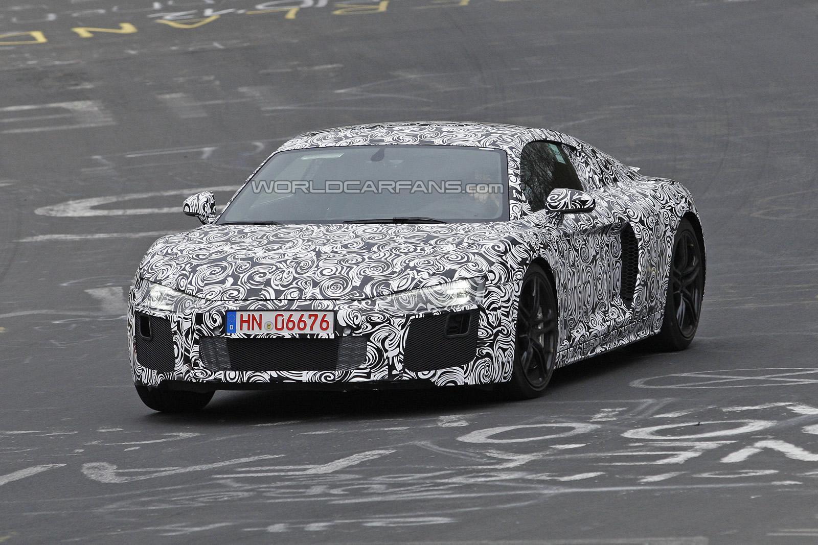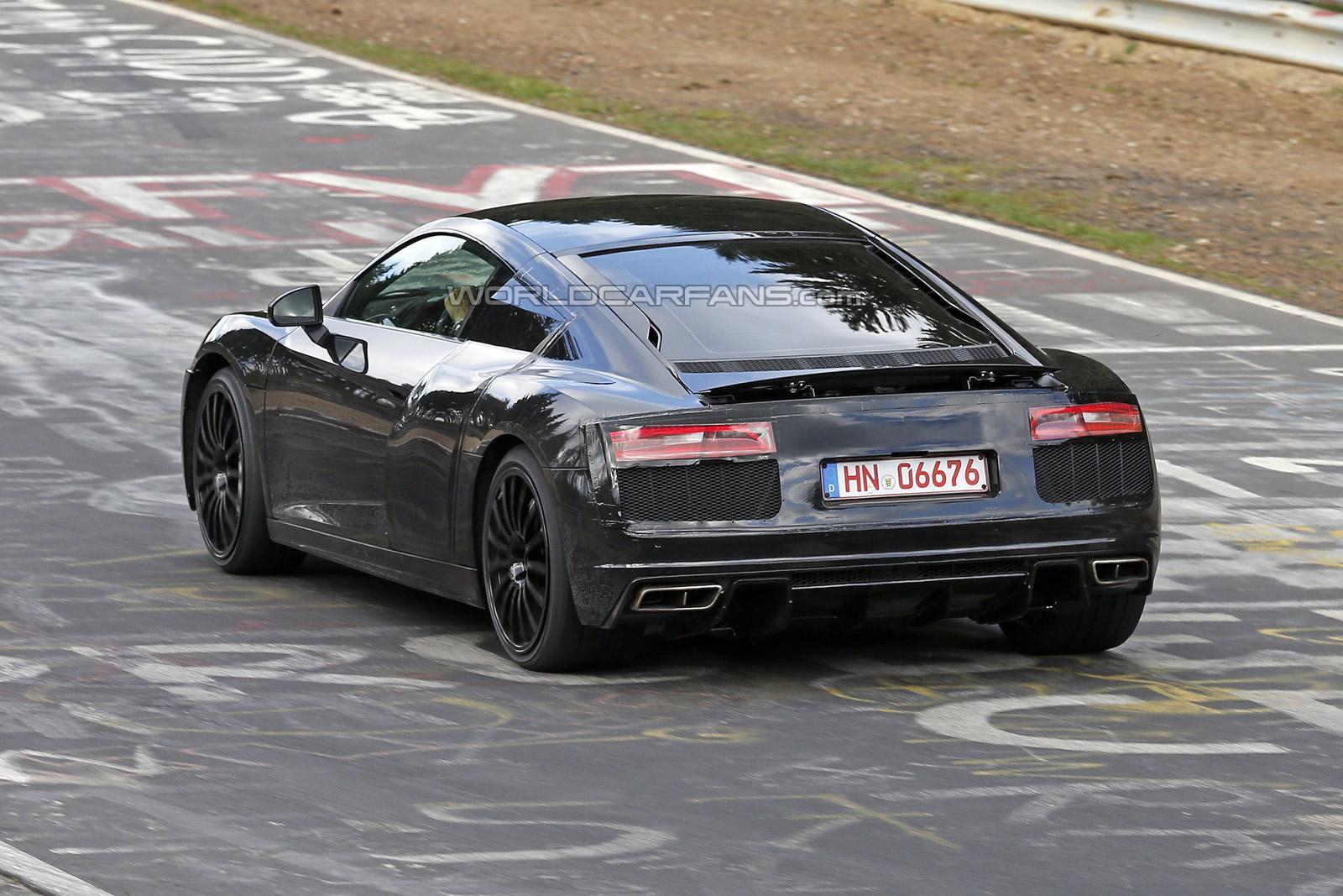 Audi’nin ikinci nesil R8 modeli Nürburgring pistinde test sırasında iken kamuflajlı olarak yakalandı. 59 kg hafifleyen yeni R8 modeli Marttaki 2015 Cenevre Otomobil Fuarı’nda tanıtılacak. Modelde 4.2 litre V8 ve 5.2 litre V10 motorlar görev yapacak. Fuarda R8 modelinin yanında birde e-tron isimli tamamen elektrik ile çalışan model de tanıtılacak. 7 İleri çift kavramalı otomatik şanzıman ile birlikte gelecek olan R8 modelinin yetkilileri, e-tron isimini verdikleri elektrikli model üzerinde çalıştıklarını ve tek şarj ile yaklaşık 500 kilometre menzil hedeflediklerini söyledi.