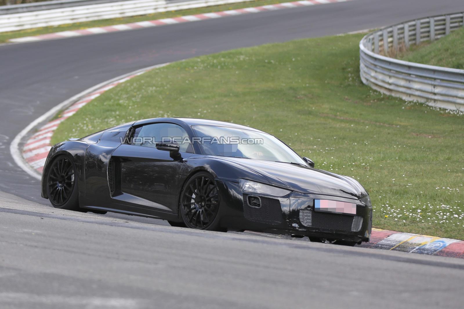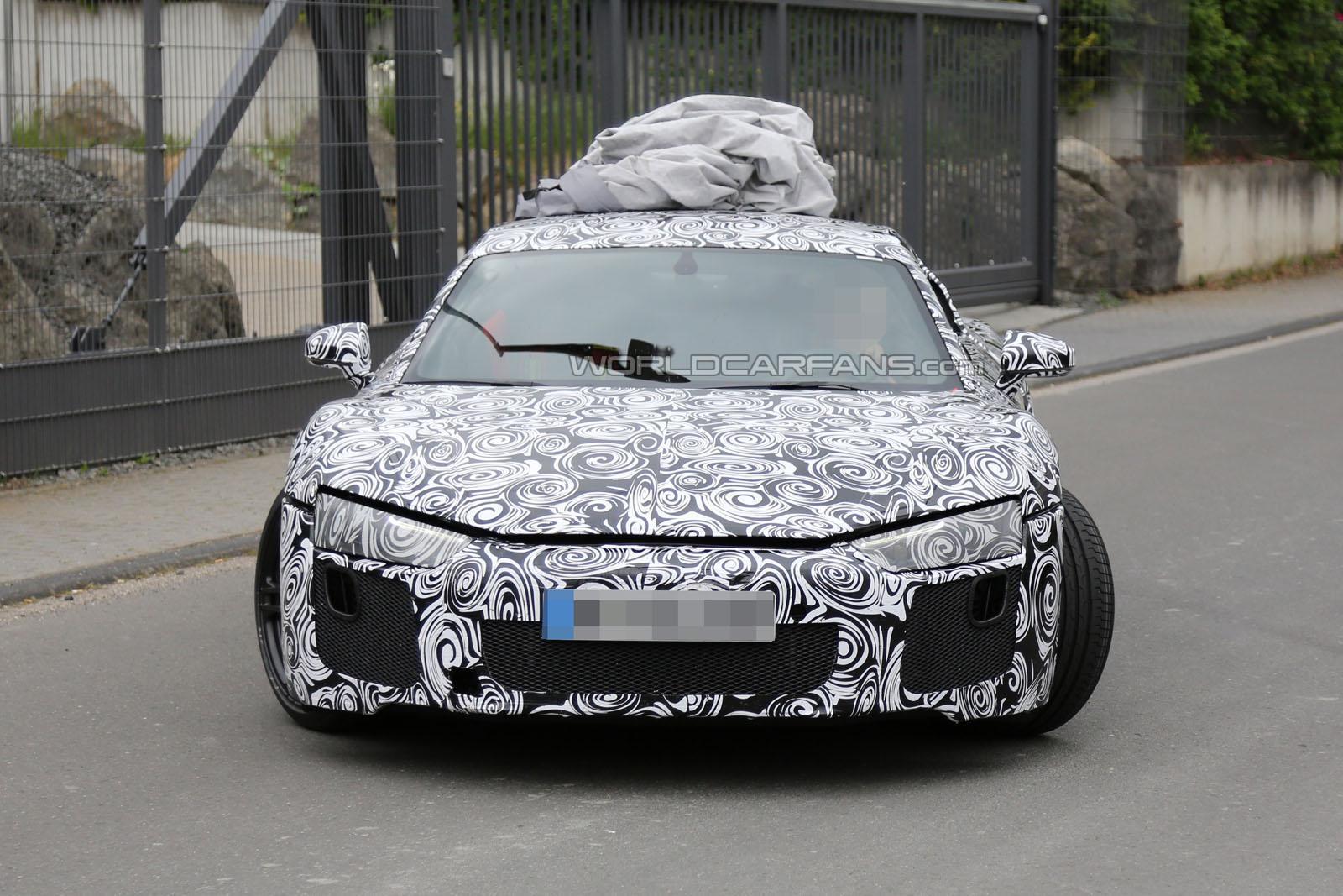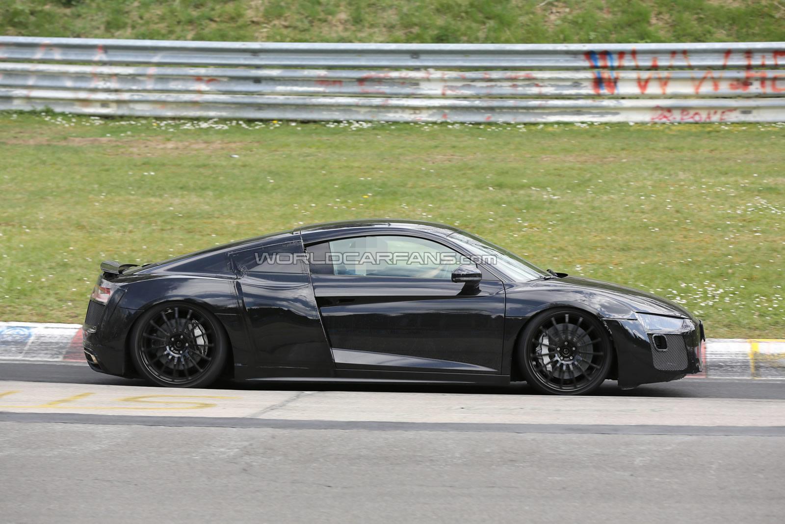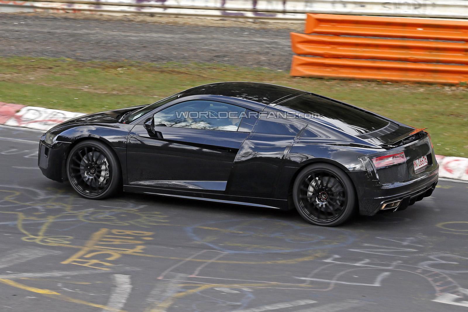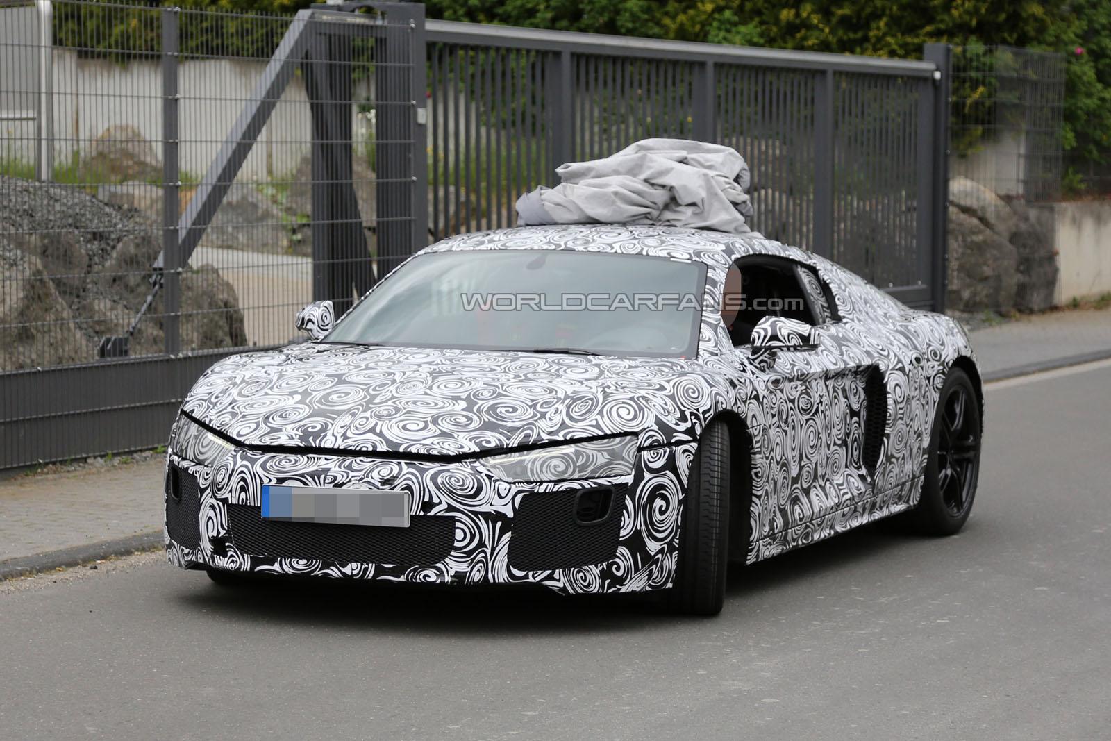 Audi’nin ikinci nesil R8 modeli Nürburgring pistinde test sırasında iken kamuflajlı olarak yakalandı. 59 kg hafifleyen yeni R8 modeli Marttaki 2015 Cenevre Otomobil Fuarı’nda tanıtılacak. Modelde 4.2 litre V8 ve 5.2 litre V10 motorlar görev yapacak. Fuarda R8 modelinin yanında birde e-tron isimli tamamen elektrik ile çalışan model de tanıtılacak. 7 İleri çift kavramalı otomatik şanzıman ile birlikte gelecek olan R8 modelinin yetkilileri, e-tron isimini verdikleri elektrikli model üzerinde çalıştıklarını ve tek şarj ile yaklaşık 500 kilometre menzil hedeflediklerini söyledi.