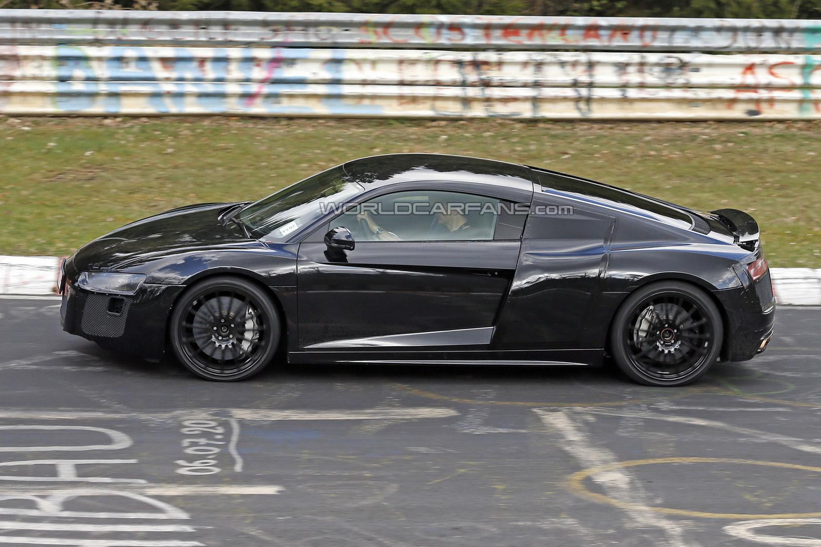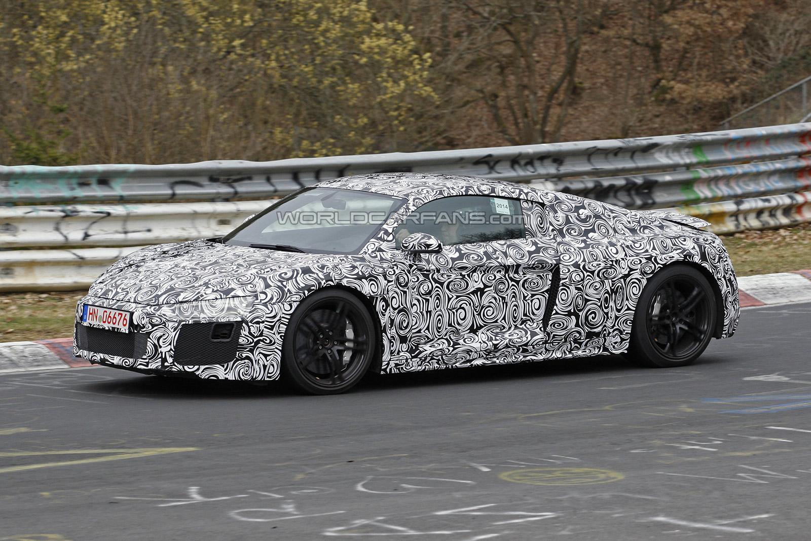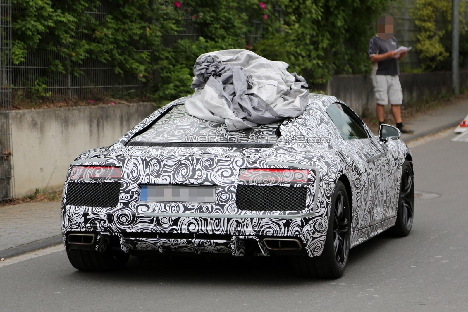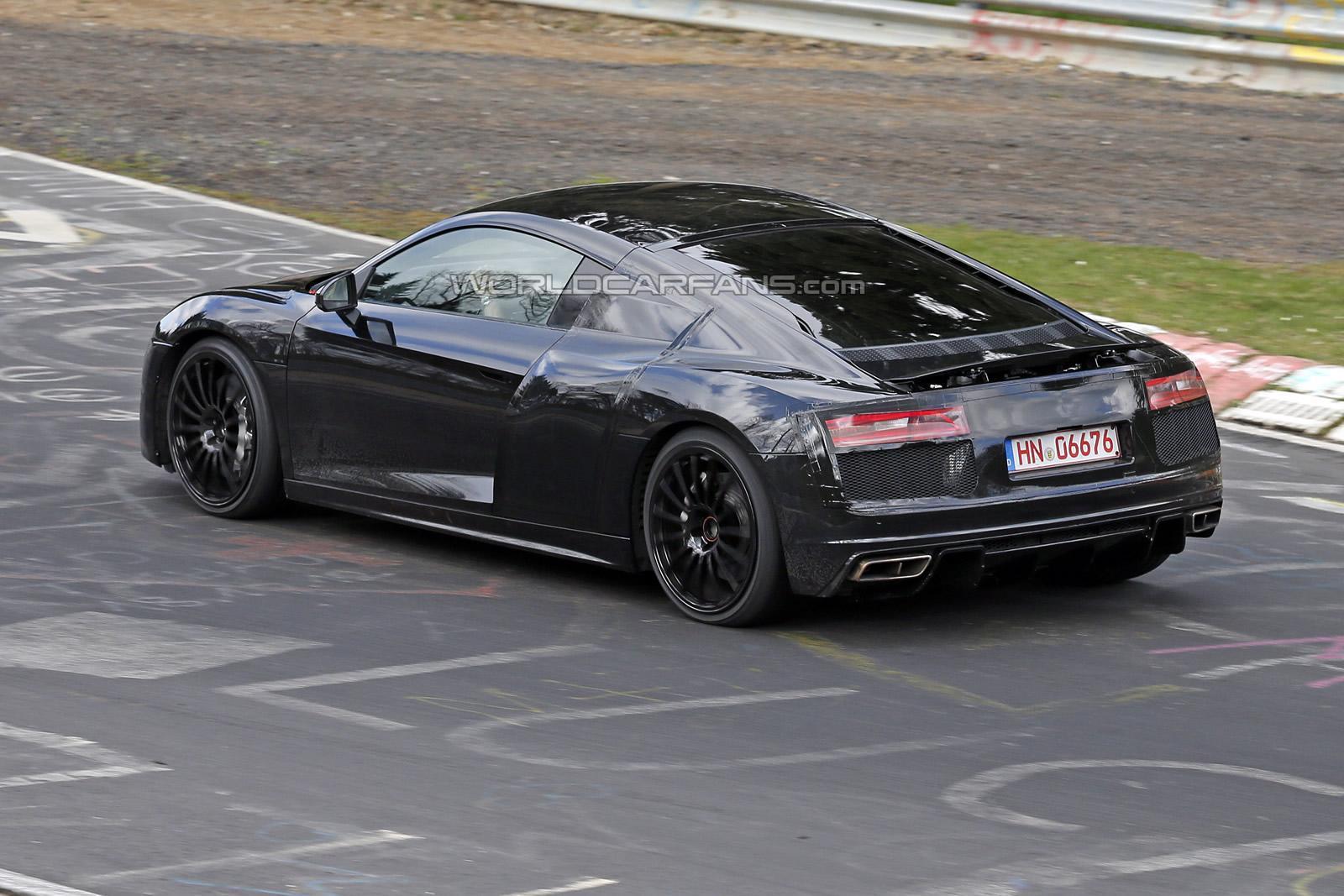 Audi’nin ikinci nesil R8 modeli Nürburgring pistinde test sırasında iken kamuflajlı olarak yakalandı. 59 kg hafifleyen yeni R8 modeli Marttaki 2015 Cenevre Otomobil Fuarı’nda tanıtılacak. Modelde 4.2 litre V8 ve 5.2 litre V10 motorlar görev yapacak. Fuarda R8 modelinin yanında birde e-tron isimli tamamen elektrik ile çalışan model de tanıtılacak. 7 İleri çift kavramalı otomatik şanzıman ile birlikte gelecek olan R8 modelinin yetkilileri, e-tron isimini verdikleri elektrikli model üzerinde çalıştıklarını ve tek şarj ile yaklaşık 500 kilometre menzil hedeflediklerini söyledi.