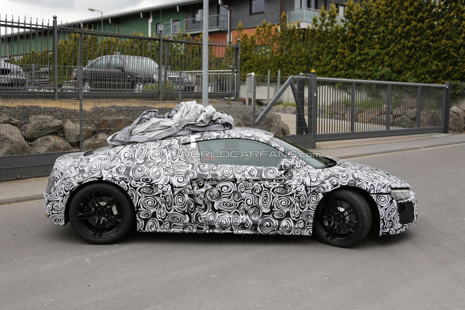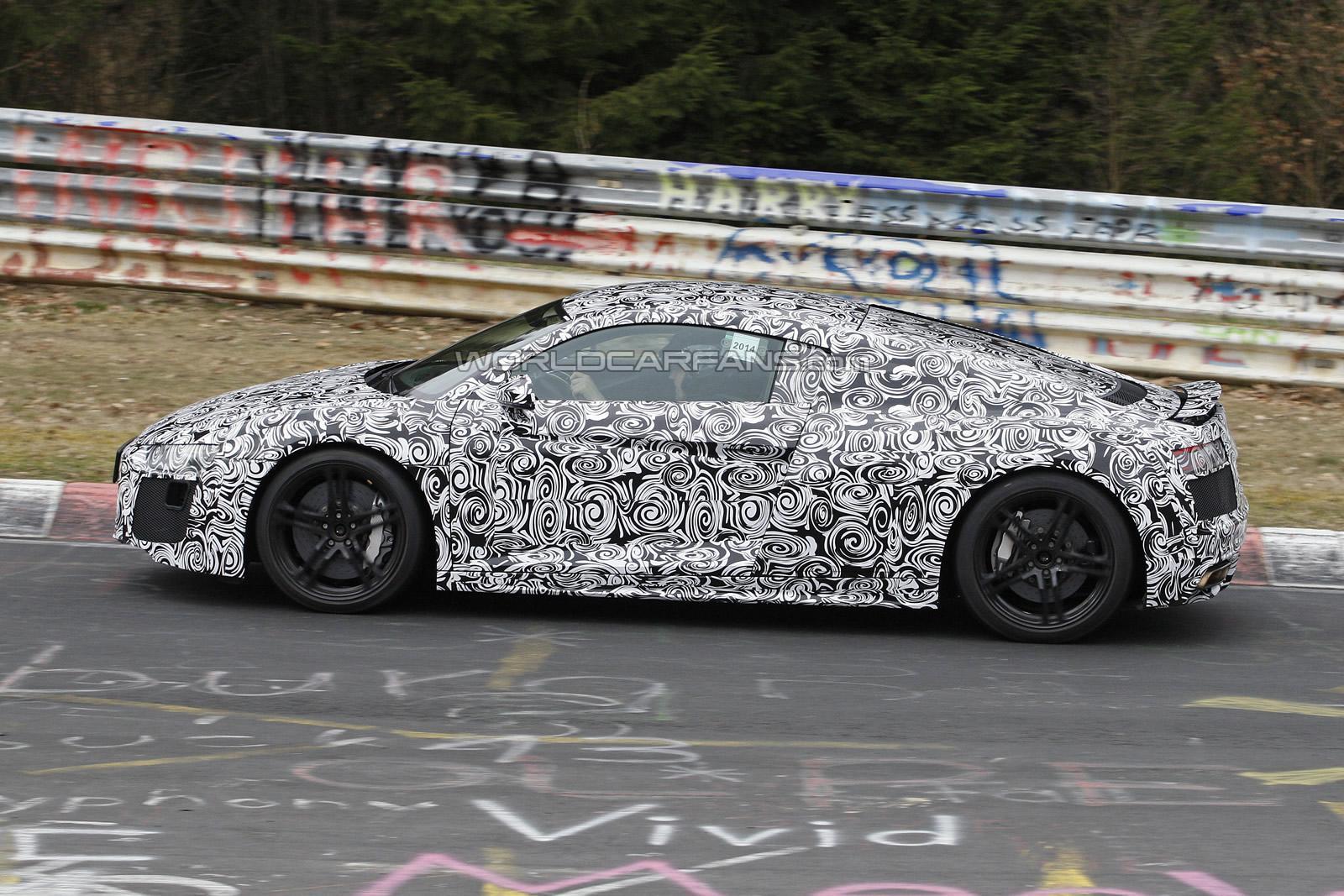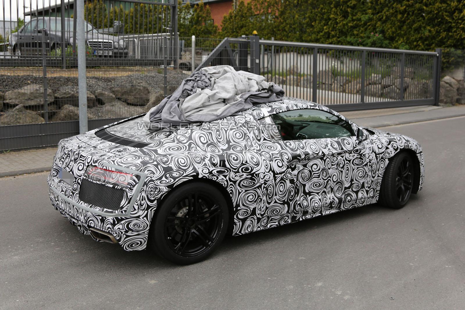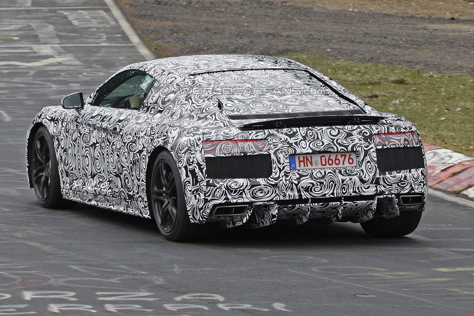 Audi’nin ikinci nesil R8 modeli Nürburgring pistinde test sırasında iken kamuflajlı olarak yakalandı. 59 kg hafifleyen yeni R8 modeli Marttaki 2015 Cenevre Otomobil Fuarı’nda tanıtılacak. Modelde 4.2 litre V8 ve 5.2 litre V10 motorlar görev yapacak. Fuarda R8 modelinin yanında birde e-tron isimli tamamen elektrik ile çalışan model de tanıtılacak. 7 İleri çift kavramalı otomatik şanzıman ile birlikte gelecek olan R8 modelinin yetkilileri, e-tron isimini verdikleri elektrikli model üzerinde çalıştıklarını ve tek şarj ile yaklaşık 500 kilometre menzil hedeflediklerini söyledi.