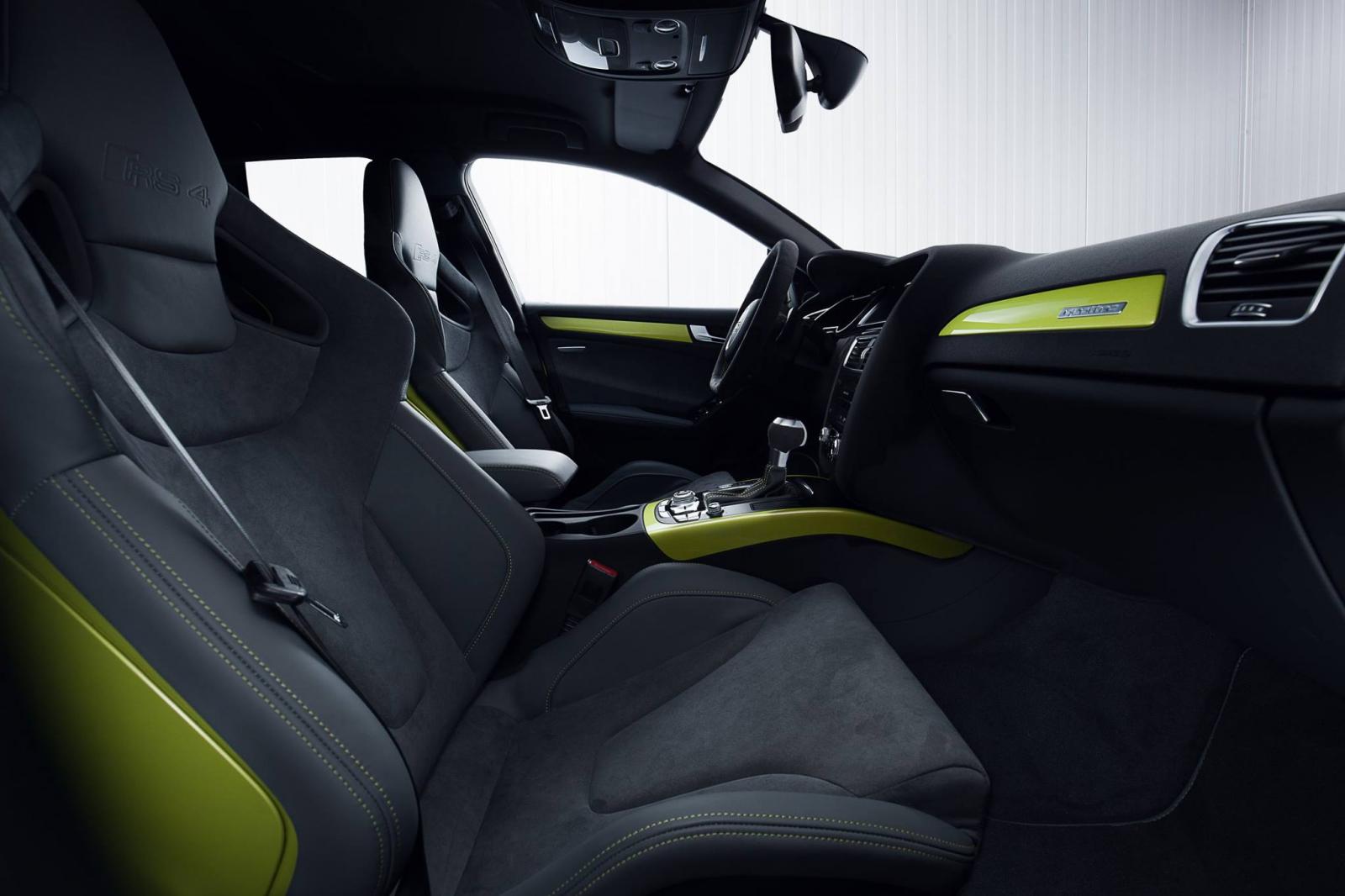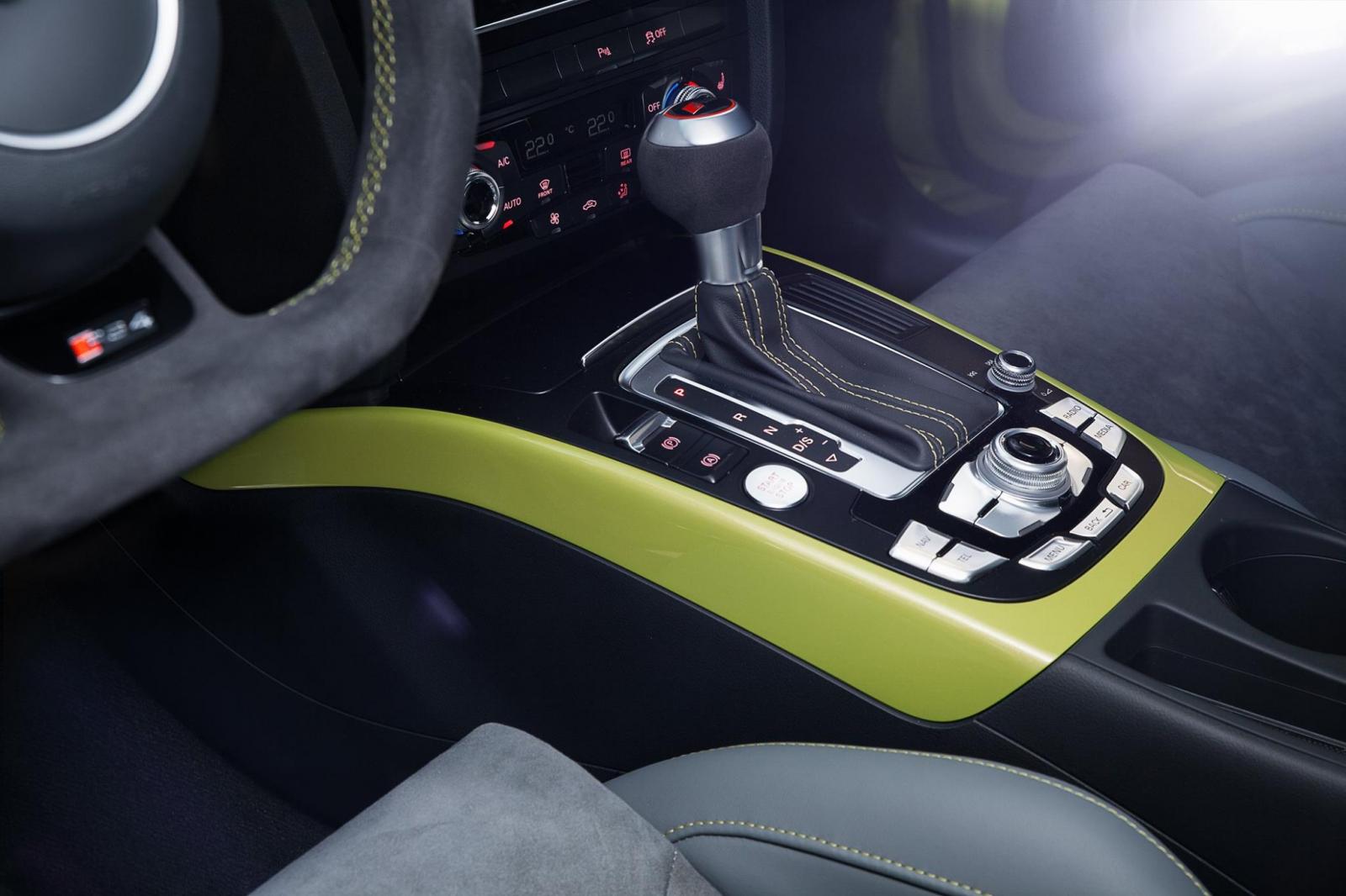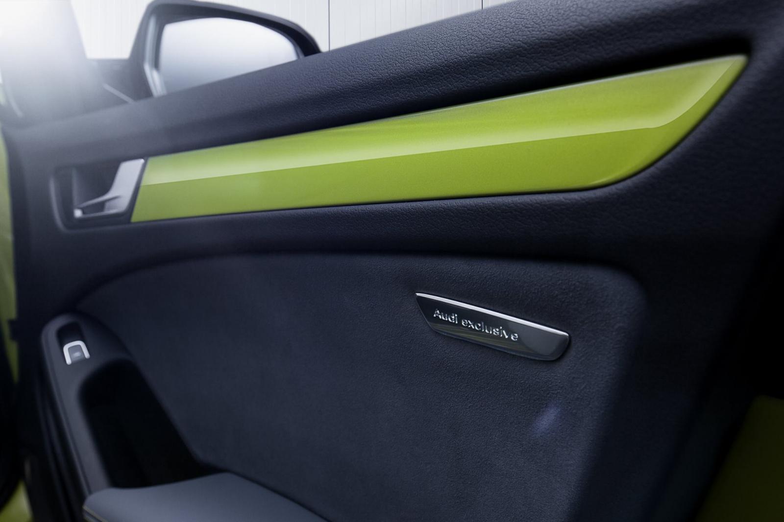 Otomobilin iç mekanında da renk uyumu devam ediyor. Peridot yeşili dikişler ve trim parçalarının bulunduğu iç mekanda Alcantara spor koltuklar ve Audi Exclusive logoları da diğer dikkat çeken özellikler arasında.