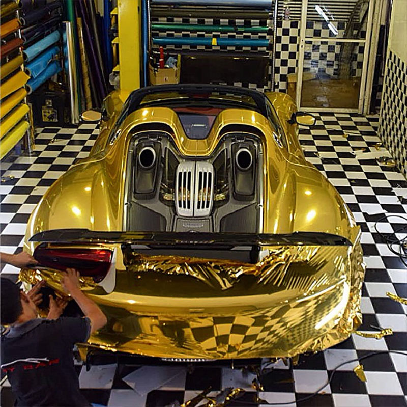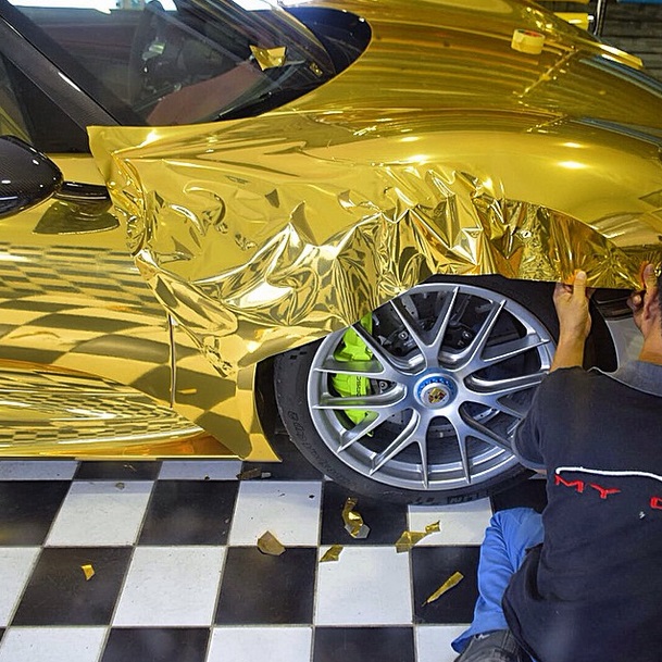 Petrol zengini Arap ülkelerinden duymaya alıştığımız altın kaplatma merakı bu sefer bir ilk olma özelliği taşıyor. Zengin bir Suudi Arabistan’lı, Porsche 918 marka süper spor otomobilini altın ile kaplattı. Altın kaplı 918 dünyada tek konumda. 918, Porsche’nin özgün çizgilerini çok güzel bir şekilde gösteriyor, tavana yerleştirilmiş egzozlar otomobilin fark yaratan noktalarından. Tüm bu özelliklerinin üstüne altın kaplı olması şüphesiz daha fazla dikkat çekmesini sağlıyor ancak bu rengin otomobile yakışıp yakışmadığı konusunda belirgin bir görüş yok. Altın kaplamanın, Rolls-Royce veya Bentley gibi köşeli çizgilere sahip otomobillere daha uygun olduğu söylenebilir. Altın kaplamasının maliyeti ise açıklanmadı.