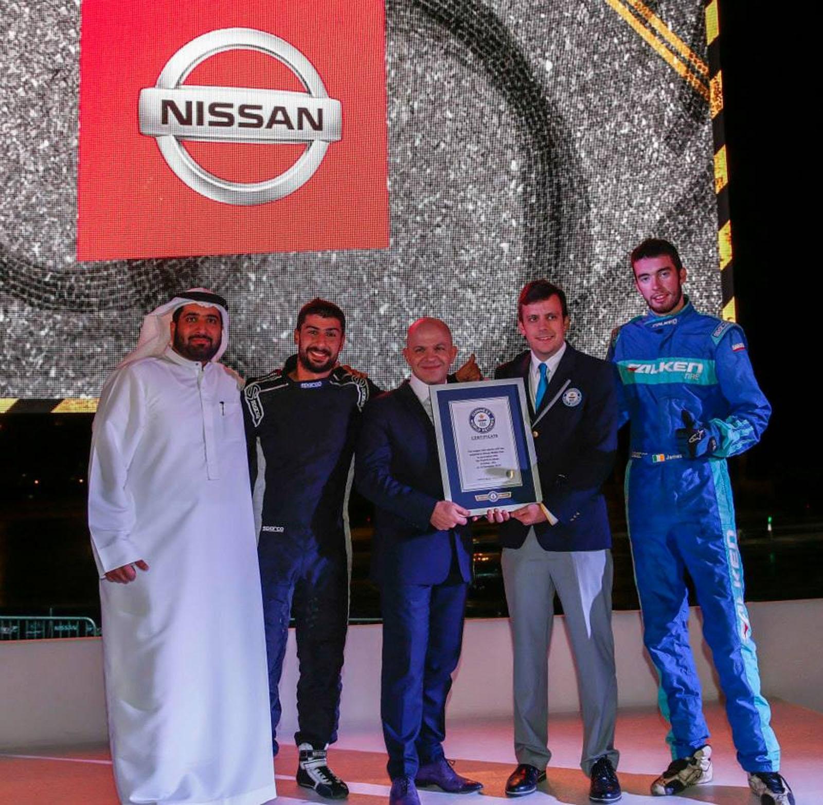 Nissan, iki aracın yan yana drift yaptığı ve araçların sanki bir bütünmüş gibi göründüğü “twin vehicle drifting” kategorisinde en uzun mesafe drifte imza atarak, Guinness rekorlar kitabına girmeyi başardı.