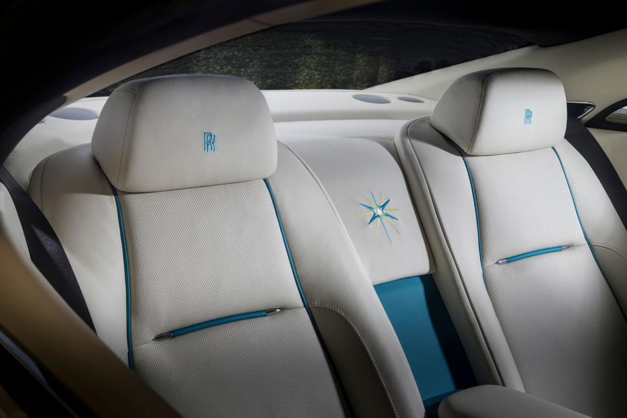 İç tarafa bakıldığında özel olarak sipariş edilen krem rengi deri koltuklar ve turkuaz mavi dikişler öne çıkıyor. Subhail amblemli Rolls Royce saatinden de bahsetmeden geçemeyeceğiz.