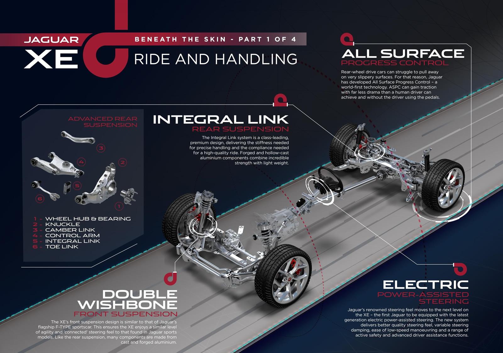 ABD’de önümüzdeki sene satışa sunulması planlanan Jaguar XE; büyük hava girişleri, göze çarpan ön ızgarası ve arkaya doğru uzanan farlarıyla şık bir tasarıma sahip. Aracın çekici tavan çizgisi ve çamurluklarındaki hava girişleri ile de arkaya kadar akıcı bir tasarım elde edilmiş.
