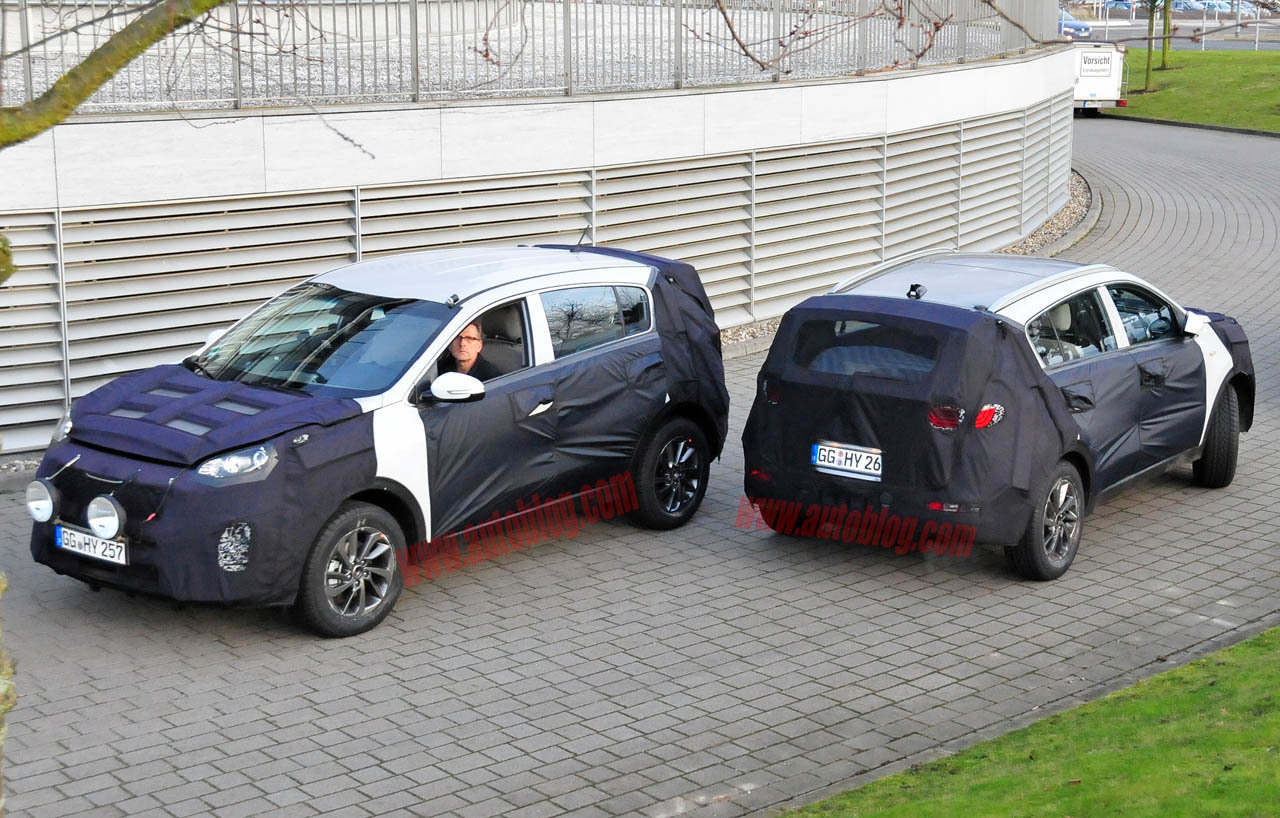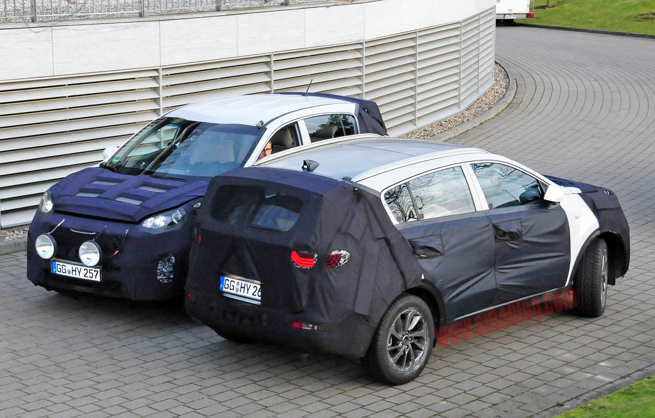 Almanya Rüsselsheim Hyundai-Kia Teknik Merkezinde testte yakalanan bu iki Sportage prototipi, üstündeki ağır kamuflajlarla tasarım hakkında bilgi sahibi olmamızı engelliyor. Fakat, otomobilin KX3 crossover konseptinin üretim modeli olacağı ve aynı tasarım çizgilerini taşıyacağı tahmin ediliyor. Ön tarafta daha geniş ve alçak ızgara, sarmal ön farlar ve belirgin sis farlarına sahip olması beklenen otomobilin, yeni led arka stop lambaları haricinde, arka silüetinin eski modelle benzer olması bekleniyor.