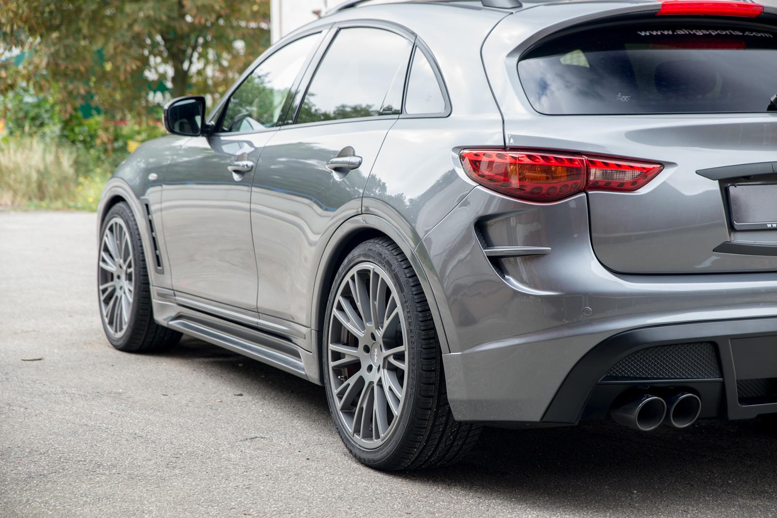 Piyasadaki en ilgi çekici crossover modellerinden birisi olması sebebiyle birçok performans geliştirme ekibinin takip ettiği Infiniti QX70’e AHG-Sports tarafından performans ve kozmetik geliştirme içeren güncellemeler yapıldı.