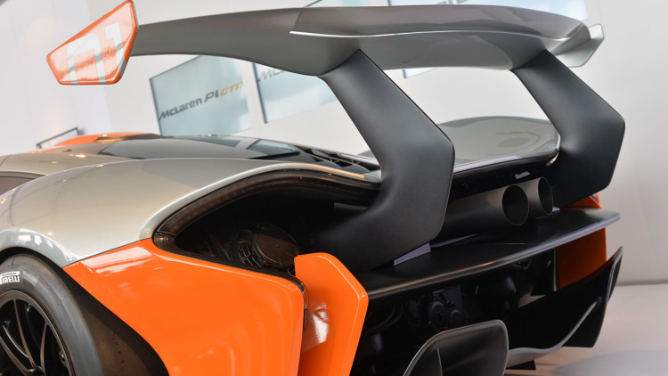 Monterey Otomobil Haftasında konseptinin tanıtımının yapıldığı zaman gördüğümüz araçta, 83 beygirlik bir güçlendirilme yapılmıştı. Böylece otomobilin güç çıkışı 986 beygir olmuştu. Aynı 3.8 litrelik V8 turbo motoru kullanan McLaren, P1 GTR’da daha geniş bir ön iz genişliği değişikliğine gitmiş, sürüş pozisyonunu aşağılara çekmiş ve aynaları A sütununa kaydırmıştı. Böylece aracın önünde sanki ısırmayı bekleyen dişler havası yaratıldı.