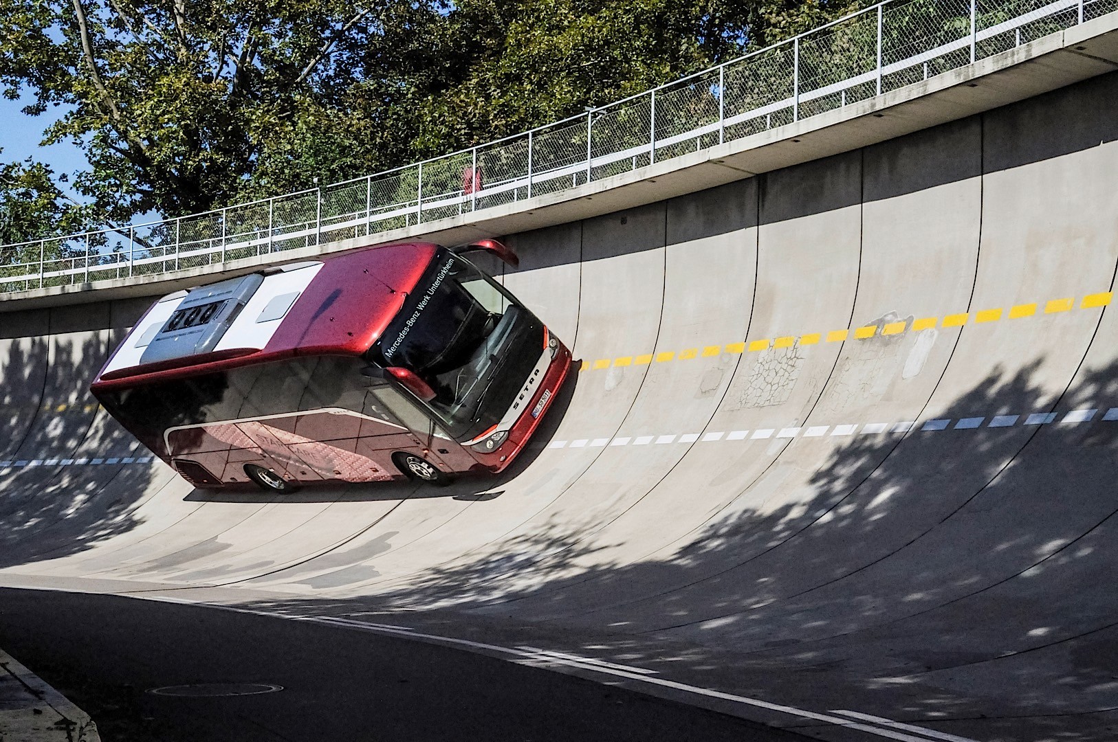 Bu test organizasyonunda organizatörler en iyi testi sona saklamışlar. Ziyaretçiler Setra S 511 HD ile saate 100 km hızla ilerlerken 60 metre çapındaki eğimli virajda 90 dereceye yaklaşan eğimlerde dönebiliyorlar. Dönüş esnasında otobüste oturduğunuz koltuğa göre, camdan sadece gökyüzünü ya da asfaltı görebilmeniz mümkün.