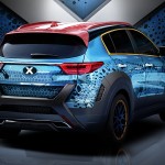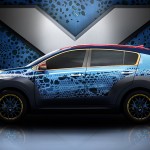 Aracın tasarımı Jennifer Lawrence’ın canlandırdığı Mystique karakterinden ilham alınarak oluşturuldu. Sonuç olarak Sportage modelinin yüz hatları mavi rengine büründü tıpkı Mystique’nin cildi gibi. Ayrıca 2 farklı tonda renge sahip olan tavan ve ızgara kısmında x amblemi ile geliyor. Aracın bir başka dikkat çeken özelliği ise bagaj kapağında yer alan iri x amblemi ve hafif tekerlekleri.
