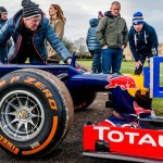 Red Bull Racing, Daniel Ricciardo’nun kullandığı 800 beygirlik F1 aracıyla çıkageliyor. F1 aracının arka lastikleri, 8 rugby oyuncusunun amansız ve uyum içindeki direnişi sonucu birazcık tutunma için çırpınıp duruyor ama nafile!
