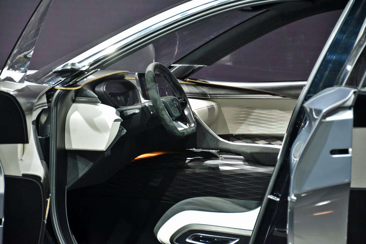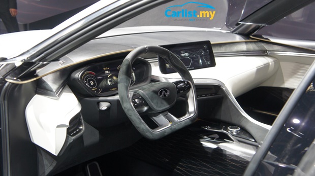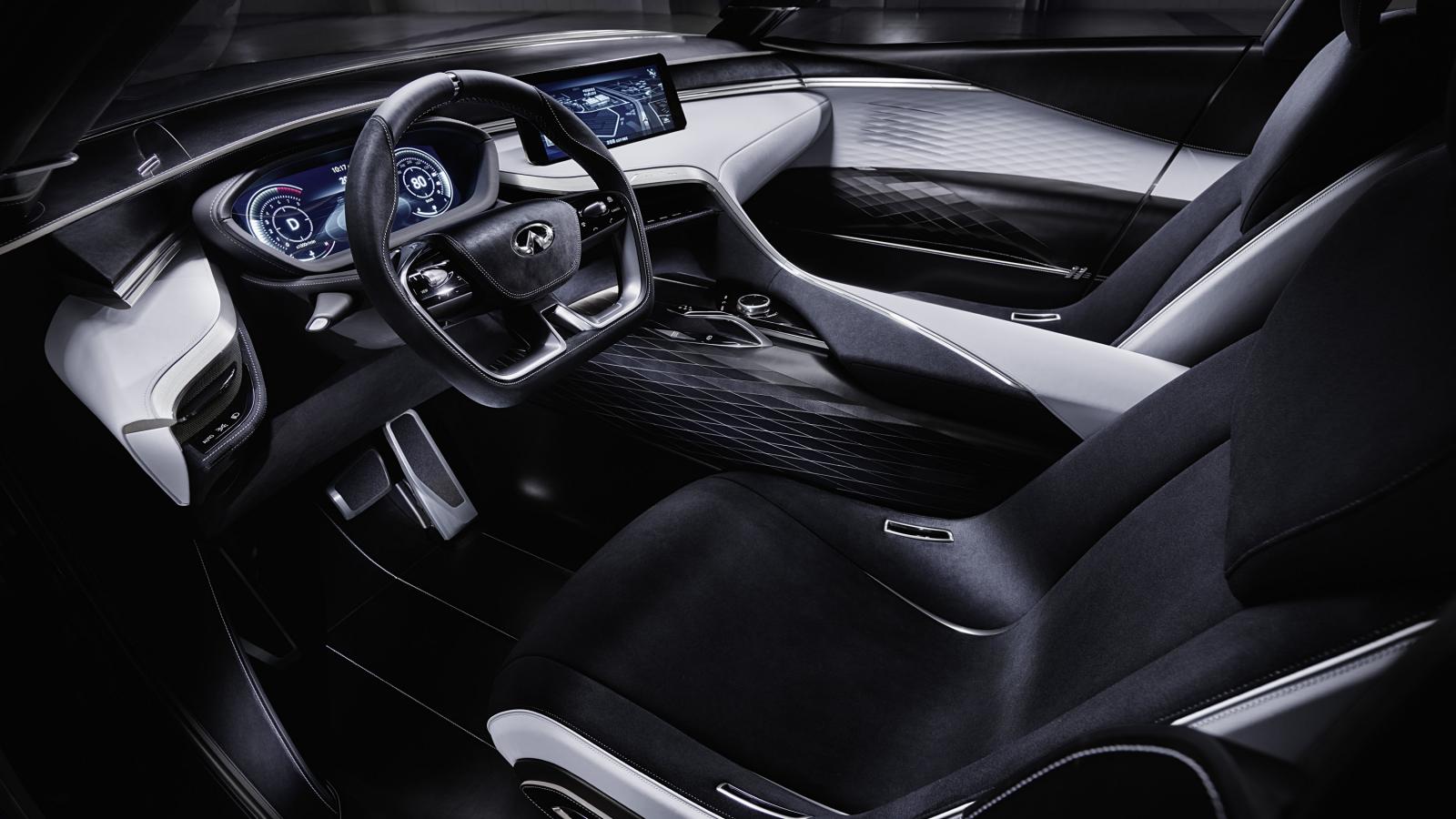 İç kabinde de, dışta olduğu gibi geleceğe dönük bir tasarım söz konusu. Sürüce odaklı konsolda Infiniti, geniş dokunmatik ekranı ile otomobilin çoğu fonksiyonu kontrol edilebildiğinden dolayı, kabinde oldukça az sayıda kontrol düğmelerine yer vermiş. Ayrıca tamamen kişiselleştirilebilen gösterge paneli, alt tarafı düzleşmiş nubuk derisi direksiyon simidi ve vücudu saran spor koltuklarıyla kabinde de sportif tasarım devam ediyor.