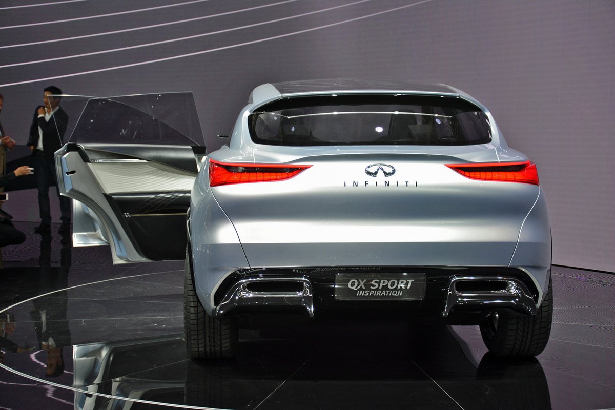 QX Sport Inspiration konsepti de bu Güçlü Zarafeti, sahip olduğu akıcı çizgileri ve kaslı çamurluklarıyla ilk bakışta belli ediyor. Arkaya doğru azalan tavan eğimi ile sportif bir görünüme sahip otomobil, aynaların yerini kameraların alması ve kapı kollarına yer verilmemesi ile geleneksel otomobillerden farklı olduğunu ilk bakışta gösteriyor.