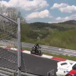 Almanya’nın Nurburgring pistindeki zeminin birinci sınıf kalitede olduğu pek söylenemez. Geçtiğimiz günlerde yapılan etkinlikte motor sürücüsü, virajı istediği gibi alamadı ve yan taraftaki korkuluklara, ardından da yol kenarlıklarına takıldı ama dengesini iyi koruyarak düşmedi. Bu sayede büyük bir felaketten kurtulmuş oldu.
