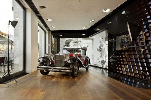 Mercedes Benz Gallery de DRIVE gibi üründen çok imaja odaklanmış bir showroom. Fakat imaj konusuna Daimler ve VW’in yaklaşımı tamamen farklı. VW geleceğe odaklanmışken Daimler geçmişten bu güne temasına odaklanmış. Bu temanın kaynağı da showroomun tarihinde yatıyor. Berlin’de ilk mağazasını 1909 yılında Unter Linden’da açan Daimler, tam yüz yıl sonra, 2009’da, 100. senesini kutlamak için Berlin’de Mercedes Benz Gallery’i açmış.