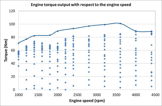 Tüm bunları incelerken, iş yerimde en uygun vites-devir-hız noktalarını internetten bulduğum bir Motor performans eğrisinde incleyip notlarımı alıyordum ...
