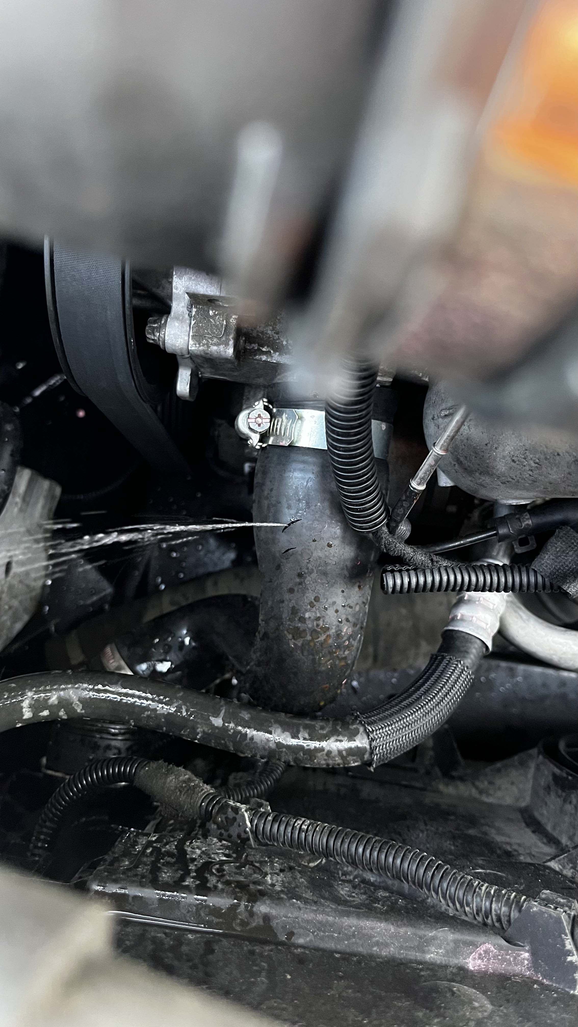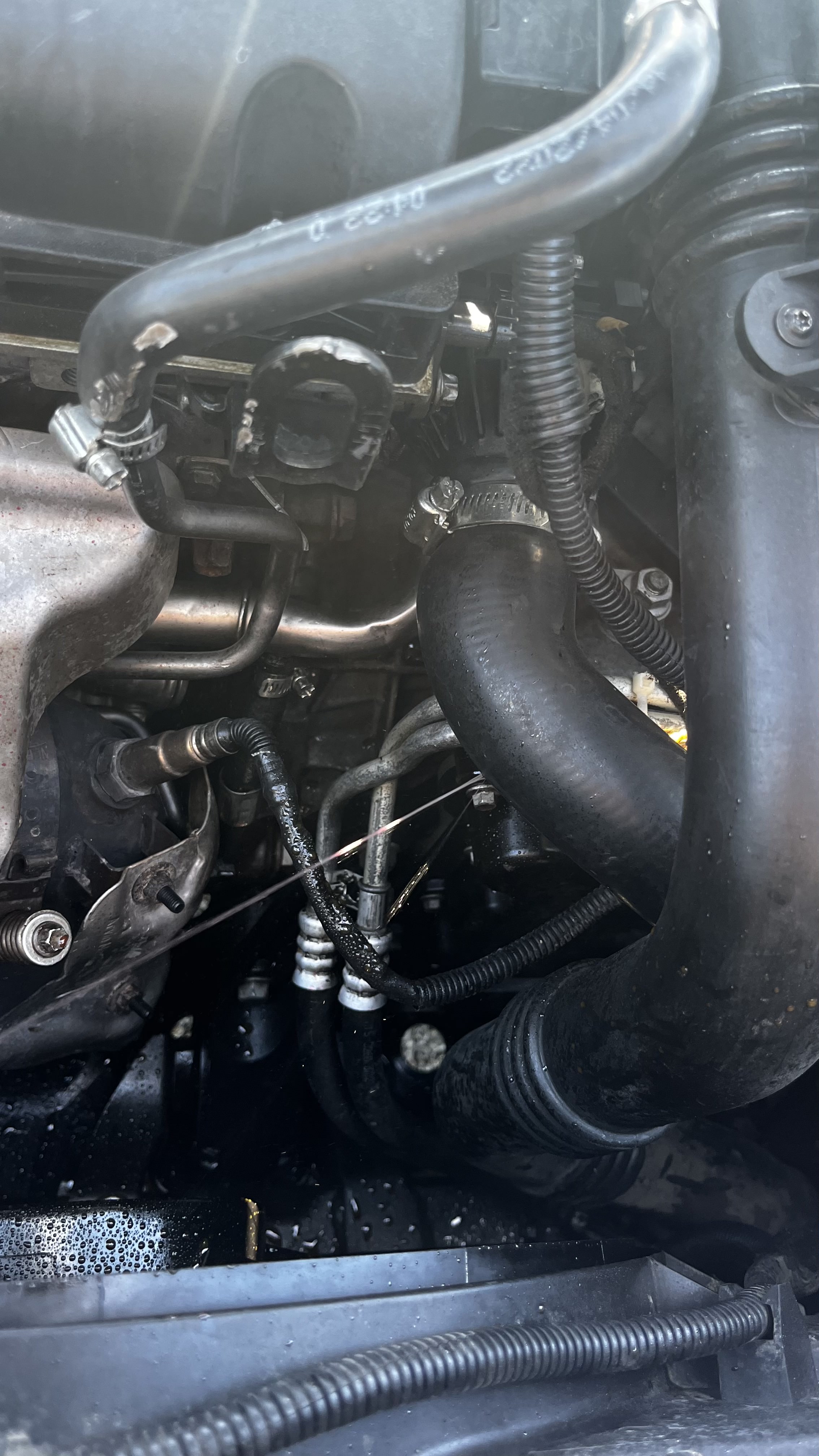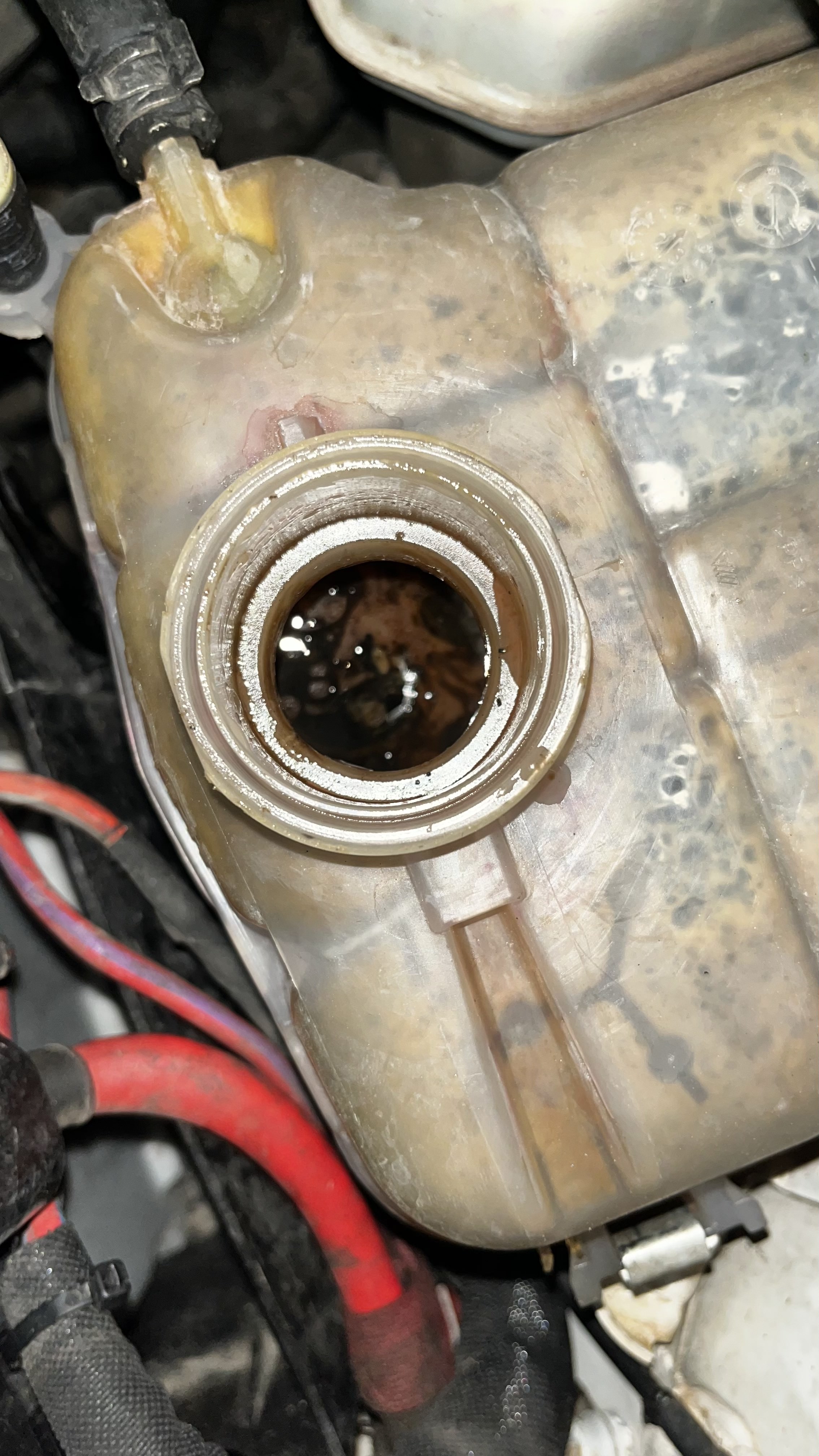 Kabus başlamıştı. Araba bütün motor yağını suya basmış. Oradaki basınçla beraber de hortum patlamıştı. Araba su yerinde tamamen yağ vardı ve hiç su yoktu. Yağ çubuğunu çektiğimde de kimseler yoktu :) Bu sırada o bahsettiğim kerkinme sorunu devam ediyor bu arada. O yüzden arabayı çok yormamaya çalışıyorum ama ara ara da yokluyorum hani bi arıza verir bi belirti verir diye.