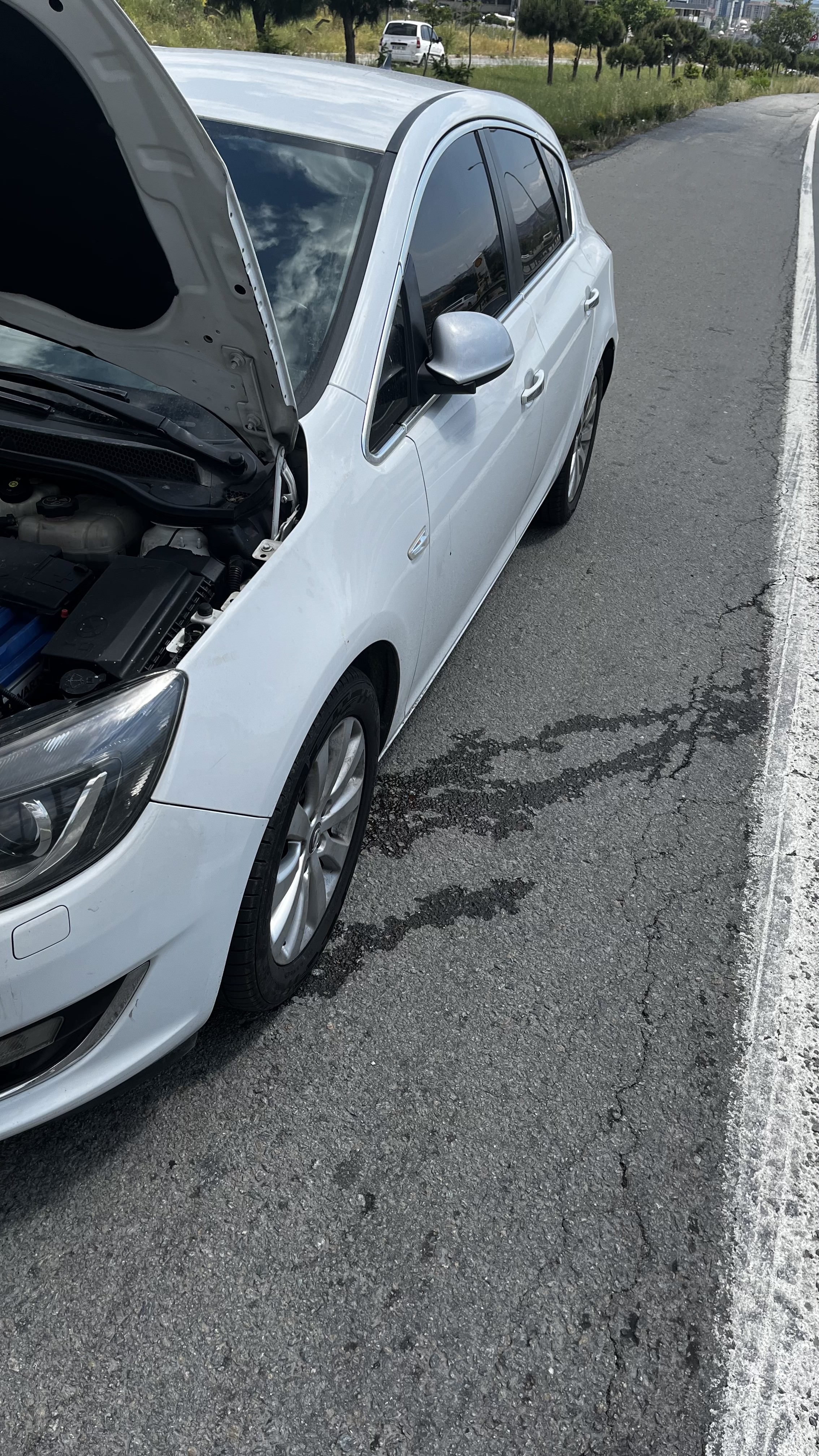 Hemen hızlı bir hamleyle 130-140 giderken arabayı kontrollü bir şekilde emniyet şeridine aldım ve stop edip kaputu açtım.