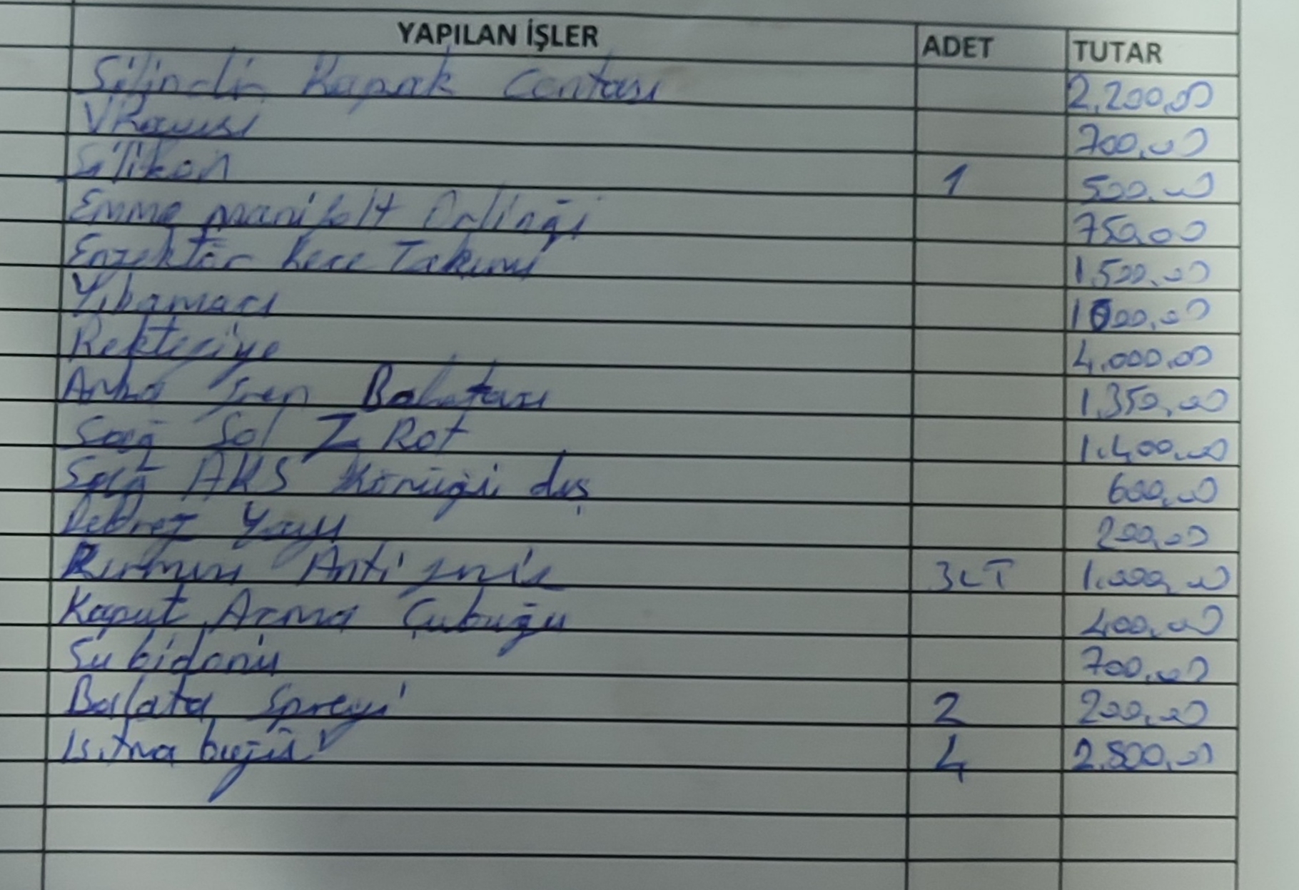 5. Ön-arka alt takım kontrolü( akislerde ariza varmis ancak onu yaptirmak yerine önce direksiyon kutusunu yaptir dediler.)