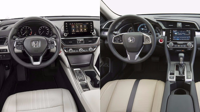 Diğer taraftan her 2 aracın kokpit tasarımları birbirlerinden tamamen farklı tercih edilmiş ve yeni Honda Accord'un çok daha klasik bir kokpite sahip olduğu anlaşılıyor. Civic'in aksine kokpitin ortasında değil üstüne yer alan bilgi-eğlence ekranı ilk başta dikkat çekerken, otomatik şanzımana sahip versiyonlarda vites kolunun olmaması orta bölmede oldukça büyük bir yer açmış ve 2 adet bardak tutucusunun kullanılmasını sağlamış. Ayrıca ön konsol ortasının en altında dev bir kapak bulunuyor. Honda tarafından verilen bilgiye göre ise donanım seviyesine göre değişmekle beraber ısıtmalı-soğutmalı ön koltuklar, kablosuz akıllı telefon şarj etme ve 4G LTE bağlantısı gibi donanımlar da seçenekler arasında yer alacak.